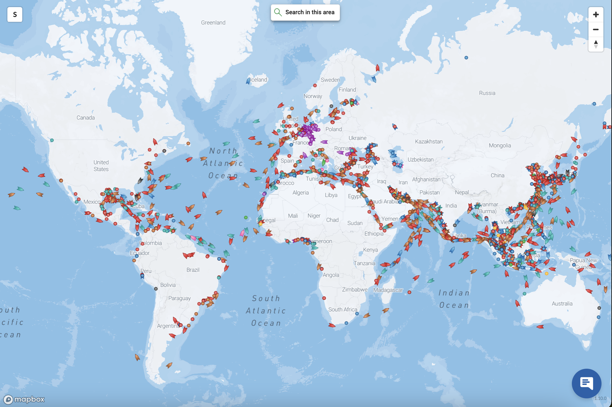• Shipping Data: Ships charging/discharging liquid products and the terminals that they previously visited, displayed on a live map that only shows liquid bulk cargo ships.